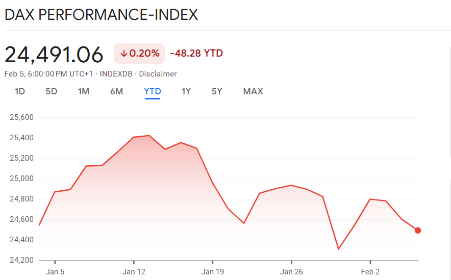 Der deutsche Aktienmarkt ist erneut mit Verlusten aus dem Handel gegangen. Die Stimmung unter Investoren blieb von Vorsicht und spürbarer Nervosität geprägt, weil sich Belastungsfaktoren aus verschiedenen Richtungen überlagerten. Neben der Aufmerksamkeit rund um die EZB-Zinsentscheidung standen vor allem starke Bewegungen bei Edelmetallen und Kryptowährungen im Mittelpunkt. Gleichzeitig war die Unsicherheit im Technologiesektor groß, der in Phasen erhöhter Risikoaversion häufig besonders empfindlich reagiert.