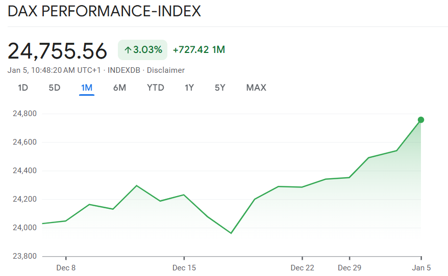 Zum Start der neuen Handelswoche haben europäische Aktienmärkte deutlich zugelegt. Angetrieben von kräftigen Kursgewinnen im Verteidigungs- und Technologiesektor erreichte der DAX ein neues Rekordniveau. Im Tageshoch kletterte der Index auf 24.792 Punkte und behauptete sich anschließend knapp darunter bei rund 24.780 Zählern, was einem Zuwachs von etwa 1 Prozent entspricht. Auch der Euro Stoxx 50 zeigte sich in robuster Verfassung und gewann 0,9 Prozent auf 5.904 Punkte.