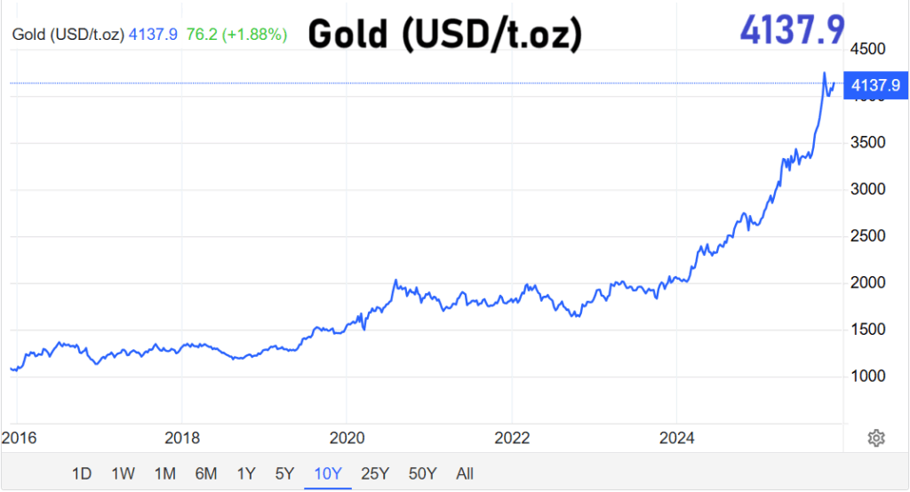 Während das Öl unter Druck steht, zeigt sich der Goldpreis robust. Die Feinunze wird bei 4.142 Dollar gehandelt und bleibt damit klar über der Marke von 4.000 Dollar.