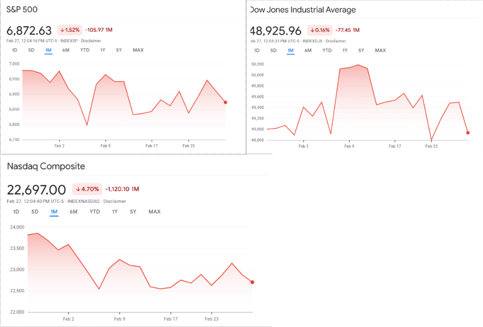 An den US-Börsen fielen die Reaktionen deutlich stärker aus. Der Dow Jones Industrial Average sank im frühen Handel um 1,1 Prozent auf 48.979 Punkte. Der marktbreite S&P 500 gab um 0,9 Prozent nach, während der technologieorientierte Nasdaq Composite sogar 1,3 Prozent verlor.