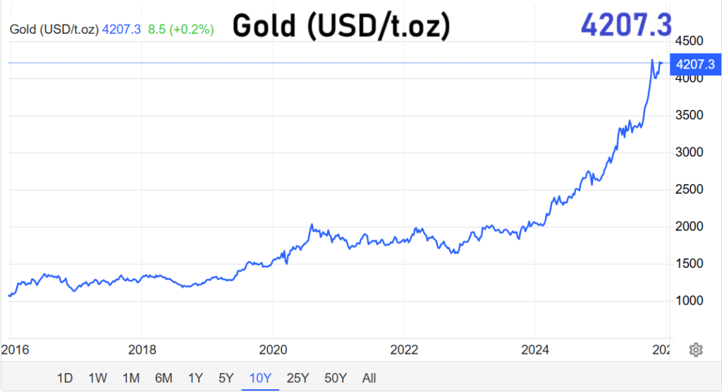 Staunovo verweist darauf, dass die Erwartung sinkender Zinsen beide Märkte gleichermaßen stützt. Zugleich hebt er hervor, dass Silber zusätzlich durch ein zweites Element begünstigt wird – eine wachsende industrielle Nachfrage, die sich aus konjunkturellen Impulsen und staatlichen Fördermaßnahmen ergeben könnte.