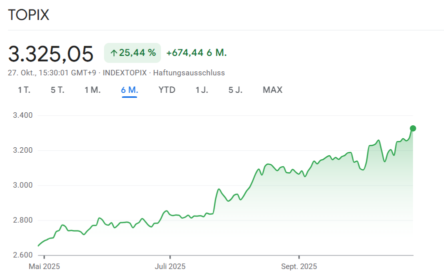 Der Nikkei 225 legte um mehr als 2 Prozent zu und erreichte 50.291 Punkte, während der Topix-Index um 1,5 Prozent auf 3.319 Zähler stieg. Die Entwicklung wird von Marktbeobachtern auf zwei zentrale Faktoren zurückgeführt: den wachsenden Optimismus über ein mögliches Handelsabkommen zwischen den USA und China sowie die neue wirtschaftspolitische Richtung unter Premierministerin Sanae Takaichi.