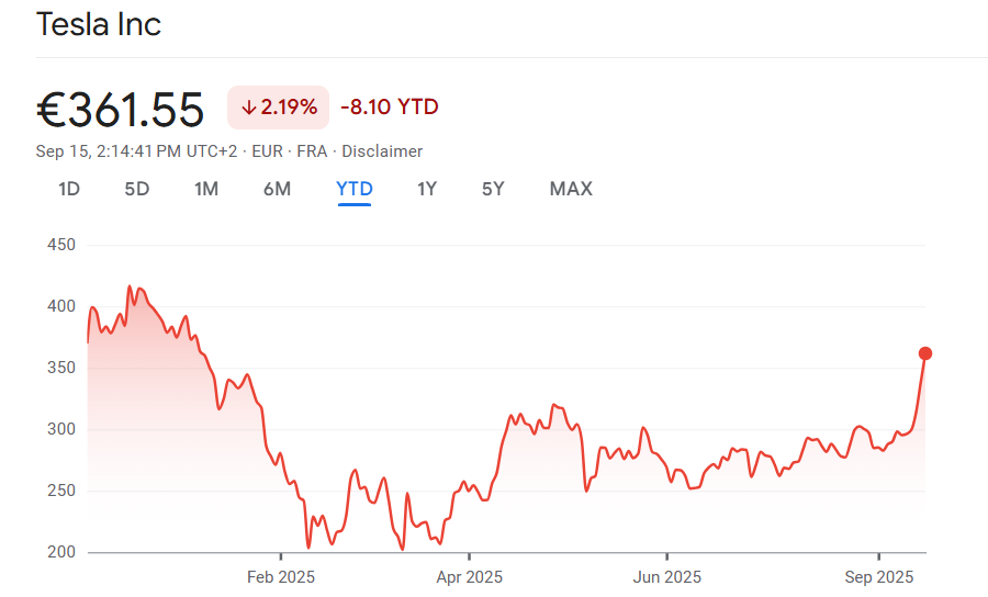 Die jüngsten Kursgewinne verschafften Tesla eine deutliche Stabilisierung. Nach dem Zuwachs befindet sich die Aktie im laufenden Jahr 2025 wieder im positiven Bereich mit vier Prozent. Allein in der Vorwoche kletterte das Papier um 13 Prozent. Anleger sehen in Musks Zukauf einen Vertrauensbeweis, der den Konzernwert stützt und dem Unternehmen zusätzlichen Rückenwind verschaffen könnte.