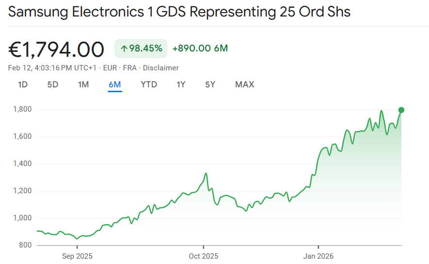 Auffällig ist, dass die Impulse weniger aus neuen Quartalszahlen oder Prognosen stammen, sondern vor allem aus Erwartungen. Der Markt handelt in diesem Fall die Perspektive, dass HBM4 und KI-Speicherlösungen die Wettbewerbsposition von Samsung stärken könnten. Die Konsequenz zeigte sich unmittelbar in den Kursen: plus 5,5 Prozent und ein Allzeithoch bei Samsung, plus 2,7 Prozent bei SK Hynix.